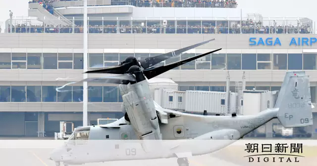 同省は今年5月、オスプレイの運用を想定する水陸機動団がいる陸自相浦(あいのうら)駐屯地(長崎県佐世保市)から、千キロ近くも離れた陸自木更津駐屯地(千葉県木更津市)に、オスプレイを暫定配備する方針を示した。木更津市内で今月3日にあった市民説明会で、同省は暫定配備の期間を明示しなかった。佐賀県幹部は「佐賀で受け入れるかどうかはっきりしていないのに、暫定配備がいつまでかなんて答えられないだろう」と話した。(福岡泰雄、福井万穂、平塚学)