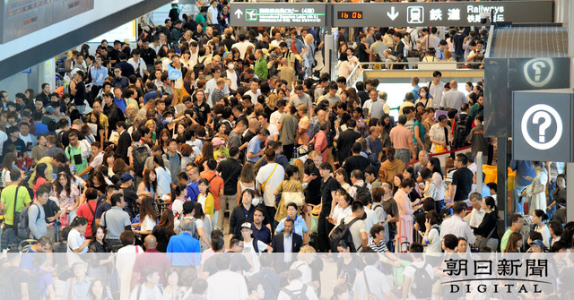 成田空港は9日、台風15号の影響で高速バスや鉄道による都心などへのアクセスが断たれ、旅客ターミナルは大混雑が続いた。時間と共に海外などからの到着客らが増え、成田国際空港会社によると、午後5時時点で約9600人が足止めされたという。