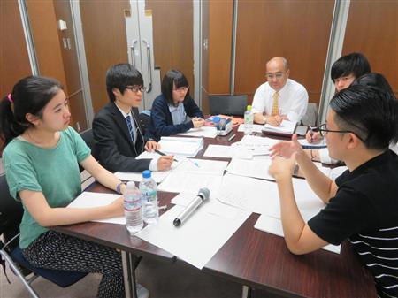 模擬立法のコーナーでは選挙権が与えられる年齢▽結婚ができる年齢▽契約が一人で結べるようになる年齢▽少年法が適用される年齢▽飲酒が許される年齢-について議論。国会や法制審議会(法相の諮問機関)の実際の議事録などを調べながら立法案を発表した。