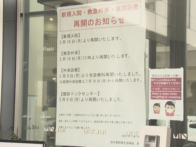入院患者の感染を受け、3月1日からすべての外来診療を休止していた南生協病院。他の患者や職員への新たな感染がないことから9日の一般外来に続き、16日から救急外来などすべての診療を再開しました。