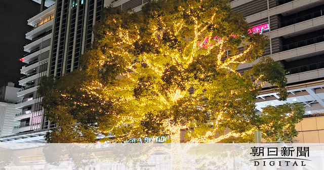 名古屋駅前のタクシー乗り場付近の2本のクスノキのイルミネーションが、ブロッコリーのように見えると、ネットなどで話題になってきた。