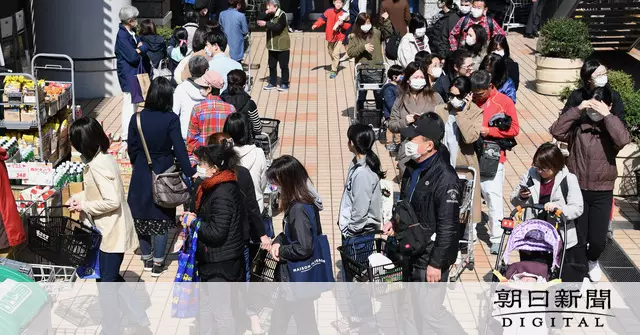 ネギや精肉を買った男性(66)は「20分ほど待ってやっと買えた。まさか、こんなことになるとは」。近所の小売店では精肉や野菜が品薄で、この店は3店目という。