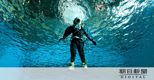 青く澄んだ水の中に、宇宙飛行士のような重厚なヘルメット姿のダイバーが浮かぶ。岩手県立種市高校(洋野町)の海洋開発科の生徒だ。