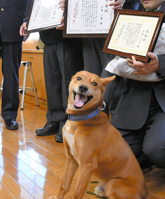 福岡市西区の無職、宇田一美さん(72)方で暮らす6歳のオスの雑種犬ケンタが6日、福岡県警西署から表彰された。高齢の女性からキャッシュカードをだまし取ろうとし、逃走した男の逮捕に一役買った。