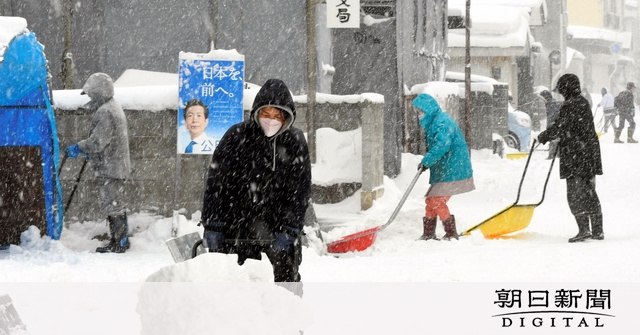 秋田地方気象台によると、強い冬型の気圧配置は26日にかけて続く見込みで、予想される最大瞬間風速は沿岸で30メートル、内陸で25メートル。26日午後6時までの24時間の積雪は多いところで、山沿い40センチ、平野部で30センチになる見込み。(井上怜 北上田剛)