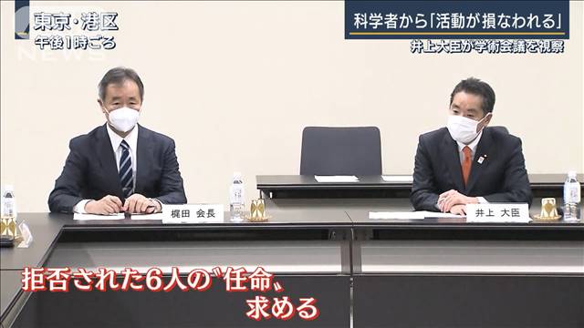 井上科学技術担当大臣は29日午後、日本学術会議を訪れ、政府と学術会議が連携して“役割”について検証したいと求めました。一方、学術会議側が強く訴えたのは、菅総理が任命を拒否した会員候補6人の早期の任命です。 日本学術会議第1部(人文・社会科学)・橋本伸也部長:「これだけの数の会員が欠員になっているということで、学術会議の健全な活動のための条件が損なわれていると言わざるを得ないというのをみんな感じている」
