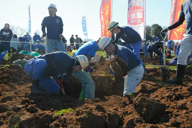 自然を舞台にみんなで体を動かすイベントをつくろうと成田ゆめ牧場が始めた同大会は、今年で20回目。担当者は「穴を掘るだけの単純作業で無になれるところが受けているようです」と話した。(福冨旅史)