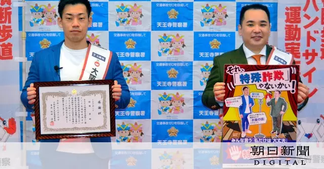 人気漫才コンビ「ミルクボーイ」が詐欺の手口を伝える特殊詐欺被害防止ポスター1千枚を、府警天王寺署がつくった。