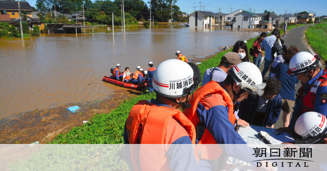 この影響で、川越市下小坂周辺では住宅の1階部分がほとんど水没。利用者や職員計約120人が一時孤立した特別養護老人ホーム「川越キングス・ガーデン」では、入居者らが数人ずつボートで安全な場所に運ばれた。救助された女性は「持病があり体調を崩さないか、施設から無事に出ることができるのか、すごく不安だった。助けが来てくれて、うれしかった」と話した。