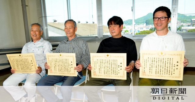 松山海上保安部は6人に感謝状を贈った。6月3日にあった贈呈式で、大西さんは「この人らあがおったけん、揚げられたんよ。年寄りばっかりやったら……」と40代、50代の3人をたたえた。木村さんは「人生の先輩方が落ち着いていろいろ言ってくれ、僕も冷静でおれたんやと思う」と感謝した。(中川壮)