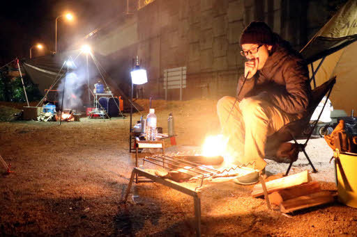 昨年12月下旬の週末。三次市作木町の江の川カヌー公園さくぎは、電源付きオートキャンプ場10区画が全てテントで埋まった。まきで火をおこし夕食の準備を進めていた広島市安佐南区の会社員桑田祐さん(39)は、「寒い中、温まるのが心地いいし、火を眺めていると無心になれます」と冬のキャンプの魅力を語る。