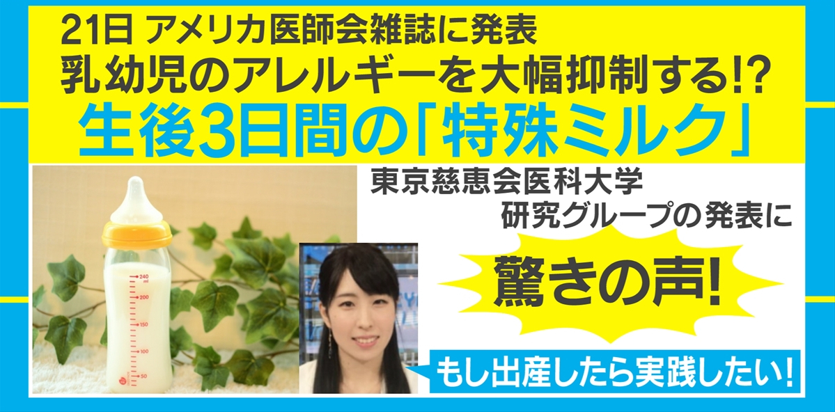 東京慈恵会医科大学の研究グループが10月21日、生後3日間「特殊ミルク」を摂取することで乳幼児のアレルギーを大幅に抑制するという研究結果を、アメリカ医師会雑誌で発表した。