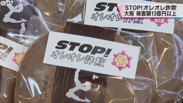 敬老の日の21日、大阪府警は和菓子店と連携して、高齢者に対し特殊詐欺の被害防止を呼び掛けた。 大阪市住吉区の和菓子店では、「STOP!オレオレ詐欺」というシールを貼ったどら焼きや啓発のチラシが配られた。府内の特殊詐欺の被害額は、今年13億円を超える一方、家族などの声掛けにより未然に防止できたケースが約500件確認されている。 高齢女性「自分ではいつも気を付けているようにはしているんですけど、いつ私も被害にあうか、わかりませんね」 子どもを連れた母親「電話かかってきても、絶対お金とかの話はしないから、そんな話したら絶対切ってねって。敬老の日なので、ちょっと連絡しておこうかなと」 大阪府警は、「特殊詐欺を防止できるよう、家族で相談できる環境を作ってほしい」としている。