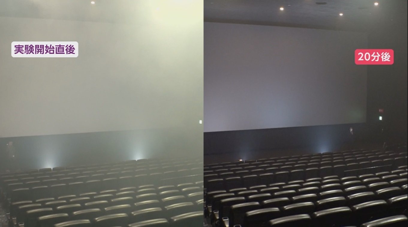 およそ20分後、新しい空気に入れ替わった。 映画館の空気の入れ替わり時間は、劇場によって異なるが、各自治体の基準に沿った換気がされているという。 今後は、換気の実証実験の映像を、予告上映時や興行会社などのウェブサイトで流し、安全性をアピールしたい考え。 (「Live News α」8月4日放送分)