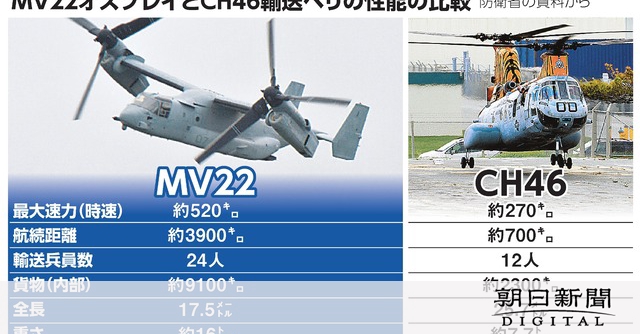 今回墜落したのは米空軍が運用するCV22だが、このほか米海兵隊がMV22、陸上自衛隊がV22を運用している。エンジンやシステムは基本的に同じものだが、民間人救出や対テロの特殊(とくしゅ)作戦にかかわる部隊が乗りこむCV22には、夜間飛行にも対応した機能が備わっており、高性能とされている。