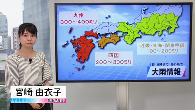 その後木曜日夕方にかけてもさらに雨の量が増え、九州では300~400ミリと、平年の7月の1か月分に相当するくらいの大雨がたった1日で降るおそれもあります。