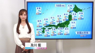 18日(月)は、全国的に天気は下り坂です。午後は雨の範囲が広がり、雷を伴って雨脚の強まる所もあるでしょう。日中の気温は西日本や東日本で20℃を超える所が多いですが、強まる風や夕方以降の気温の変化に注意が必要です。