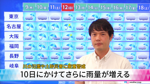 どこで大雨になるかまだ予想がつきにくい所もありますので、常に最新の情報をご確認ください。 (気象予報士・河津真人)