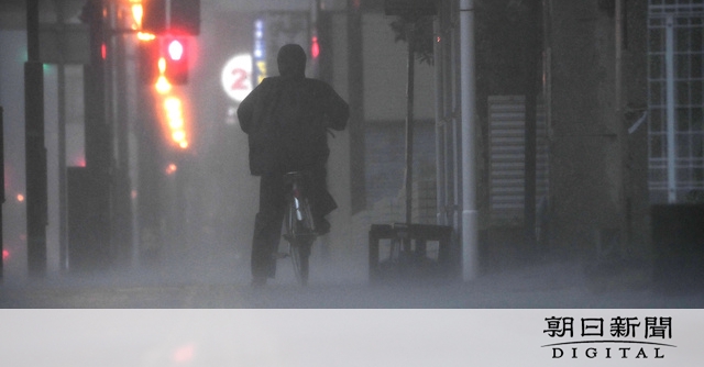 台風7号の接近で暴風警報が出た和歌山県新宮市では、夕方になるにつれて風はさらに強くなっている。横殴りの雨が降り続け、市街地を歩く人はほとんど見かけない。強風でハンドルを取られないよう、車は速度を落として走行していた。