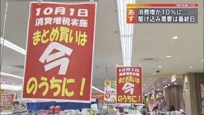 東京・豊島区の家電量販店では「税率8%最後の日」とあって、多くの人が訪れました。この店の9月の売り上げは、テレビが一部の商品で前年の4倍、冷蔵庫やドラム型洗濯機は前年の2.2倍など、高額商品の売り上げが多かったということです。