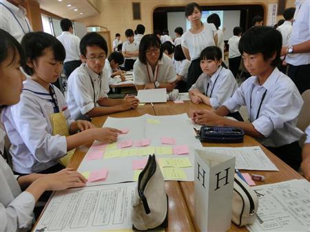 サミットは平成23年に、いじめを受けていた大津市立中学2年の男子生徒が自殺する事件が発生したことなどを踏まえ、29年から各地域で開かれており、今回は3回目の開催。生徒は「個人」「周囲の人」「会員制交流サイト(SNS)利用」に分かれ、それぞれいじめを防止するために何ができるかを話し合った。