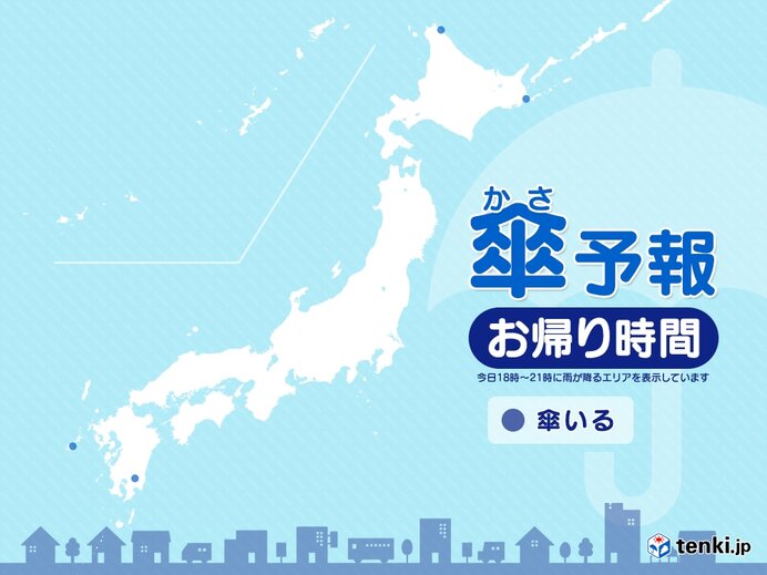 16日のお帰り時間は、全国のほとんどの地域で雨の心配はないでしょう。ただし、北海道や九州の一部では雨の可能性がありそうです。