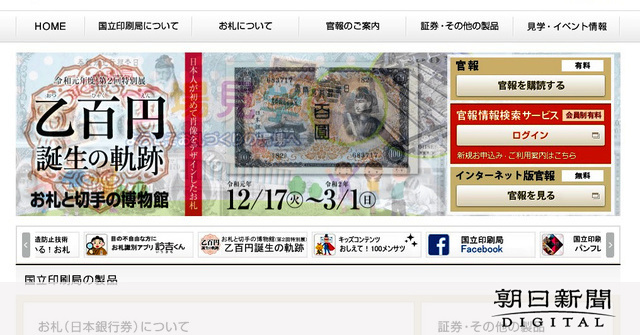 国立印刷局は旧財務省印刷局で、現在は独立行政法人。全国6カ所に工場があり、紙幣(日本銀行券)や切手、パスポート、官報などをつくっている。貨幣をつくる造幣局は別の独法となる。