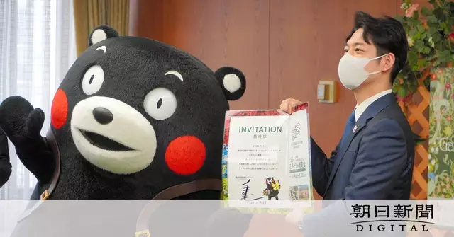 フェスタ開催まで3カ月となった25日、熊本県のキャラクター、くまモンが道庁を訪れた。熊本では「くまもと花とみどりの博覧会」が開催中で、博覧会とフェスタの招待状を相互に交換してPRした。