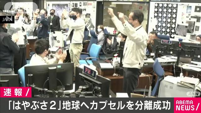 日本の探査機「はやぶさ2」が小惑星「リュウグウ」で採取した砂などが入ったとみられるカプセルの分離に成功しました。分離されたカプセルはこの後、大気圏に突入して6日未明にオーストラリアの砂漠に着陸する予定です。はやぶさ2はこの後、別の小惑星の探査に向けて軌道を修正し、地球を離れていきます。
