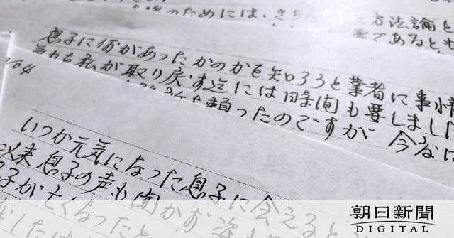 「藁(わら)にもすがる思いで、このような業者に頼る親は多いでしょう。それが子どもにとってどれだけ残酷なことか」。後悔と自責の念をつづりながら、いまひきこもっている人への公的な支援の充実と、「民間の支援業者や団体を規制・管理するしくみを整えてください」と訴える。