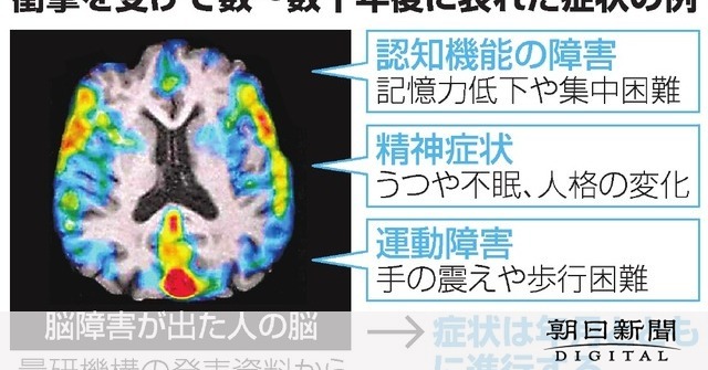 ボクシングやアメリカンフットボール、交通事故などで頭に衝撃を受けると、数年から数十年して認知機能が低下したり、手の震えのような運動障害が出たりする――。これまで「ボクサー脳症」などとして経験的に知られていた脳障害で、患者の脳に蓄積される異常なたんぱく質を可視化することに日米のチームが相次いで成功した。脳障害を早期に診断できるようになると期待される。