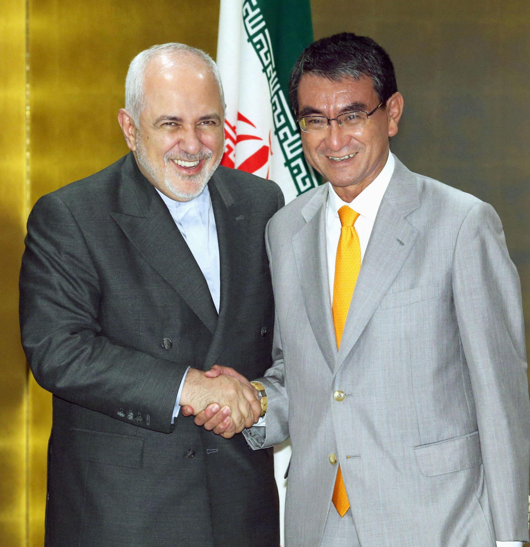 河野太郎外相は27日夕、米国とイランの対立で緊張が高まる中東情勢を巡り、イランのザリフ外相と横浜市のホテルで会談した。イラン核合意を順守し、合意を損なう措置は控えるよう要請した。「緊張緩和のために、外交努力を続ける」とも伝えた。
