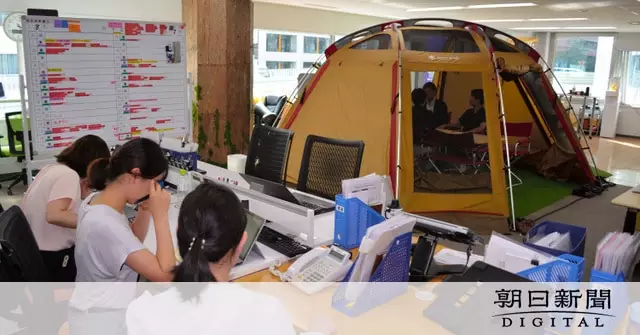 夏真っ盛り、会社にいてもキャンプ気分を――。企業のオフィス内で、テントを張ったりキャンプ用の椅子を並べたりする動きが広がっている。ミスマッチに見えるが、社員には好評だとか。背景には、働き方改革の浸透もあるようだ。