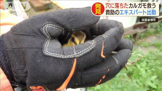 穴に落ちたカルガモを救出。手を差し伸べたのは、救助のエキスパートでした。 8羽でやってきたカルガモの親子。14日午前9時ごろ、秋田市で発見されました。ところが、カルガモの親子は歩いてきて、そのうちの1羽が側溝の中に落ちてしまいました。その救出の様子を住民の人たちが見守っていたようです。なんと、駆け付けた消防によって1羽の子ガモが無事に救出されました。その後、救出された子ガモは近所の池に放されました。