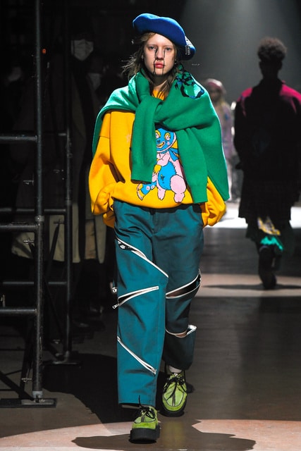 テーマは「Desire(欲望)」。米ロサンゼルスを拠点に活動するアーティスト、ジェシー・ドラクスラーと協業し、アートと融合したパンクスタイルを披露。大胆な筆致で描かれた人の顔のモチーフなどを、シャツやコート、パンツなどにとり入れた。デザイナーの末安弘明はショー後、「新型コロナウイルスで世界中が元気を失っているが、こういう状況だからこそ強い服を作らないといけない」と話した。作品はモノトーンが目立つが、「気分が沈むようなものではなく、白黒だけどポップにしたかった」。