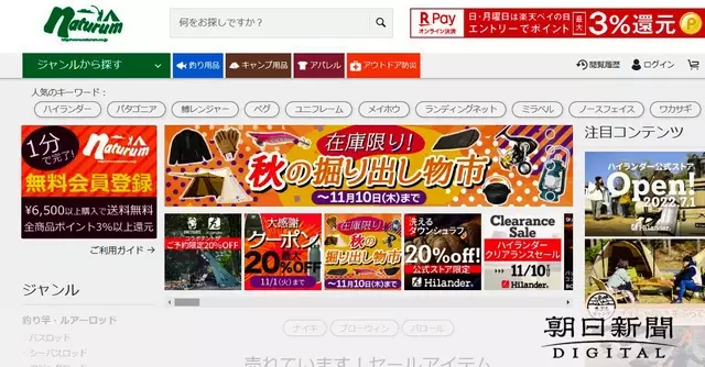 同社が28日発表した2022年9月中間決算では、アウトドア用品を扱うサイトを運営する子会社のナチュラム(大阪市)でテントやバーベキューセットなどの在庫がかさみ、2億5700万円の評価損を出した。