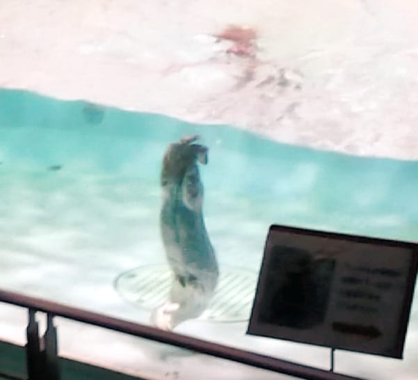 水槽の中で頭を下にして勢いよく回り始めたと思えば、次は頭だけ水の上に出して高速でスピン。途中でひねりを加えたり横向きでスピンしたりすることもあり、興に乗ってくると自分で手拍子まで入れてくる。