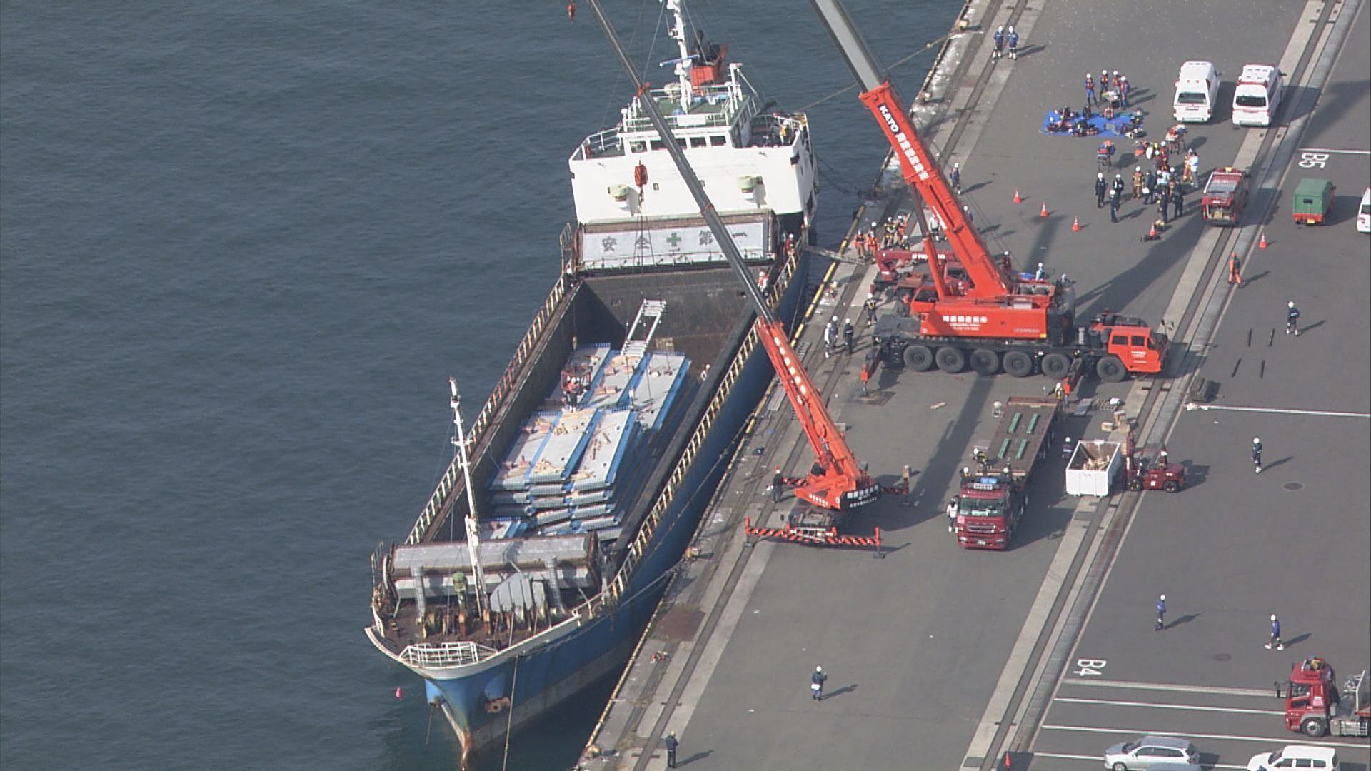 3日朝、名古屋港弥富ふ頭で、コンテナ船に積まれていたコンクリートの板が荷崩れして作業中の男性2人が下敷きになり、1人が死亡しました。