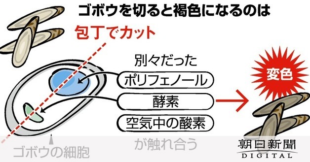 ①ゴボウの泥を洗い流し、包丁の…