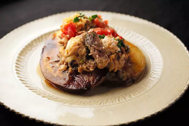 フォークとナイフでいただけば、おしゃれな主菜にぴったり。冷めてもおいしいひと品です。はしで食べるならあらかじめナスを一口大に切り、ソースをからめてもよいでしょう。(小林未来)