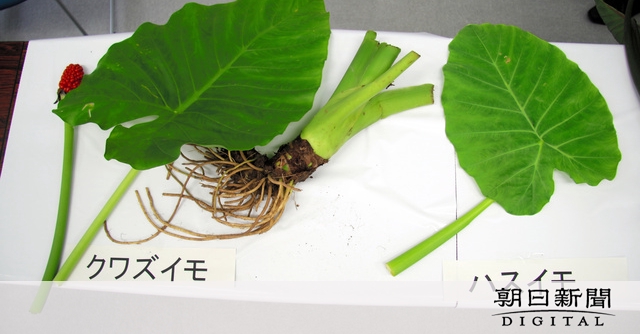 ハスイモは、茎の部分をみそ汁に入れたり酢の物にしたりして食べるが、クワズイモとは葉の形が似ており茎だけだと見分けにくいという。県は体調に異常を感じたら保健所に連絡するよう呼びかけている。(奥正光)