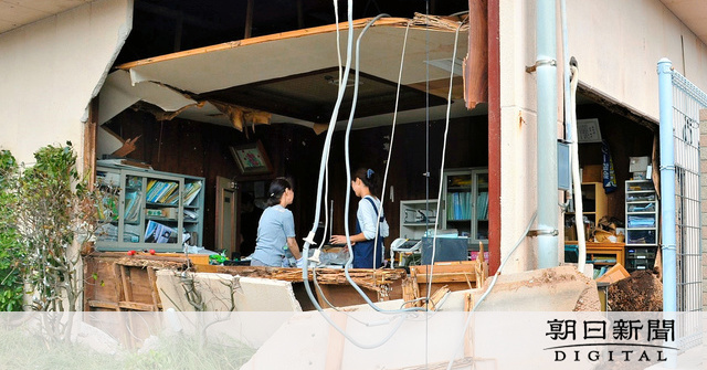 男性職員は「海に近く、ほかの建物の並びの切れ目に面しているので、風が強く当たったのかもしれない。これまでの台風では5、6年前に植木が1本倒されただけだったのに」と驚いていた。(四倉幹木)