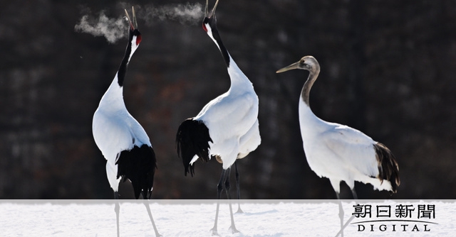 一時絶滅したと考えられていた国の特別天然記念物タンチョウが、北海道東部のいまの鶴居村で再発見されて3月で100年。今冬には保護の中核をなす釧路湿原近くの給餌場に「珍客」が現れ、人気者になった。