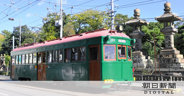 大阪市南部と堺市を結ぶ路面電車の阪堺(はんかい)電気軌道。大阪市住吉区の停留場で待っていたら、緑色の車体を揺らしながら、「モ161号」がやってきた。扉や窓枠などは木製だ。道路脇を歩いていた人が「えらい古いなあ」と声を上げた。
