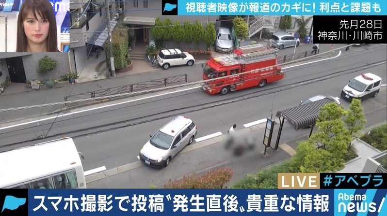 先月、登校中の小学生を襲った川崎の通り魔事件で、犯行直後の容疑者が、自らの首を切り横たわる映像。16日に大阪・吹田市で起きた交番襲撃事件で、容疑者の逮捕直後に撮影された、全身真っ黒の防護服に身を包んだ捜査員たちの姿。17日に東京・町田市で起きた、児童ら4人が重軽傷を負った交通事故の瞬間の映像。いずれも近隣住民や通行人などが撮影し、テレビ局に提供したものだった。