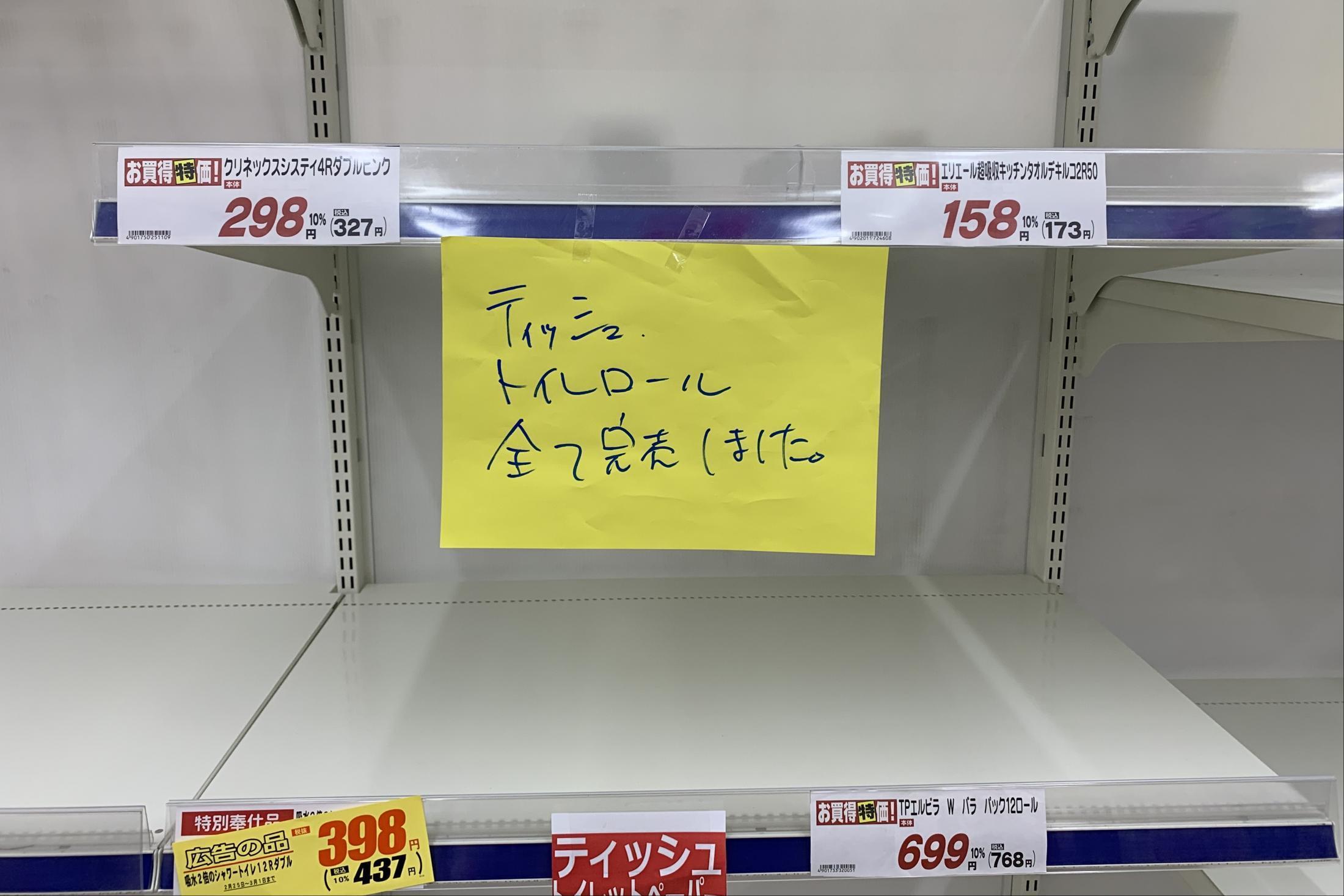 「2月27、28日ごろからトイレットペーパーなどが売り切れる店が増え、すぐに全国の店舗に広まりました」