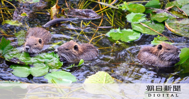 兵庫県播磨町の狐狸(こり)ケ池に、大型ネズミのヌートリアの一家がすみ着いている。つぶらな眼(まなこ)に、どことなくとぼけた表情。外見は愛らしいが、生態系を壊す特定外来生物で、土手などに巣穴を開けて川や池の決壊を招く恐れもある。生息数が増えているのだろうか。