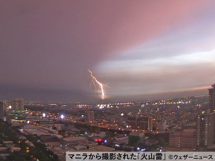 首都マニラからは、火山灰等の噴出物の摩擦で発生したと考えられる稲妻(火山雷)が観測されています。