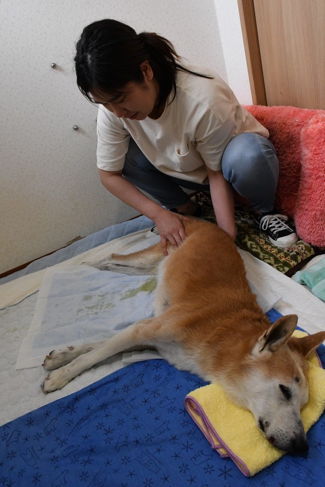 ある女性(57)はフルタイムの仕事をしながら、夫(58)と飼い犬を自宅で介護する。愛犬は13歳。腎臓の病気などで2カ月前、完全に寝たきりになった。