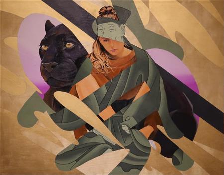 千利休や与謝野晶子といった堺ゆかりの“文化人”がモチーフの絵画や映像作品が並ぶ企画展「透明回線 ART Exhibition『SAKAI』」が、堺市堺区のさかい利晶の杜で開かれている。関西を拠点に活動するクリエーターチーム「透明回線」の作品展。新たに制作された8点を含む14点の個性的な作品が、堺の魅力を発信している。18日まで。 古代から近代まで長い歴史を持ち、文化の交流拠点としても栄えた同市がテーマ。同館によると、関心を持つ層が年配者に偏りがちな「歴史上の人物」に焦点を当てながらも、幅広い年齢の人に訪れてもらいたいとの考えから、透明回線に企画に合わせた作品を依頼した。 透明回線は、うきち▽SHUN▽としお-の3人が大阪芸術大(大阪府河南町)在学中に結成。直線や曲線を多用し、人物や動物を色彩豊かに描いた抽象的な作風を特徴としている。昨年はJR京橋駅(大阪市城東区、都島区)のリニューアル工事で仮囲いにイラストを描くなど、幅広い創作活動を展開している。 展示作品のうち、与謝野晶子をイメージした3連作は、情熱的な歌人で女性の社会的権利拡大を訴えた活動家でもあった人物像が描かれる。「自らの美学を貫くために豊臣秀吉から命じられた切腹を受け入れた」などと解釈する小説もある千利休を描いた作品は、誇り高い姿がすごみを感じるほど表現されている。 担当者は「特に若い世代には、歴史や文化は敷居が高いと思われがちだが、企画展から興味の幅が広がっていけば」と話している。午前9時~午後6時。入館料は大人300円、高校生200円、中学生以下100円。